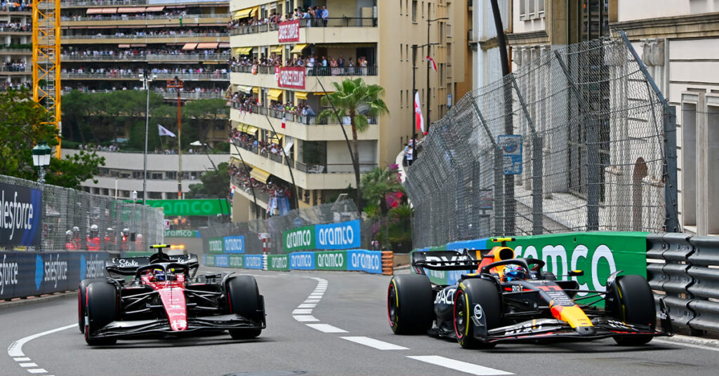 Sergio Pérez à la lutte avec une Alfa Romeo à Monaco – © Red Bull Content Pool