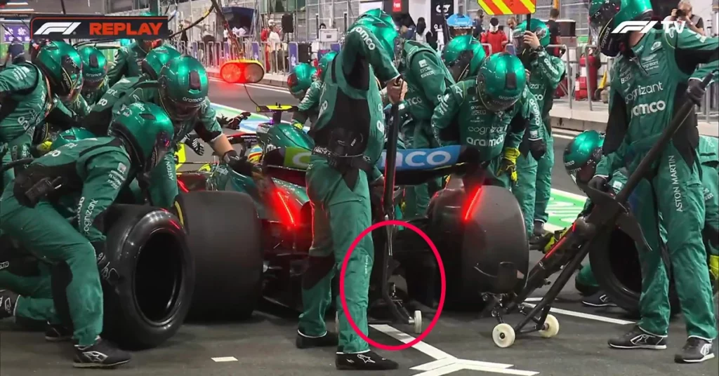 L’Espagnol avait en effet reçu 5 secondes de pénalité suite à un mauvais positionnement sur la grille. Le double champion du monde a ensuite profité de la Safety Car pour purger sa sanction. Lors de son arrêt, le mécanicien à l’arrière, avait alors touché la voiture avec son ‘jack’, sans toutefois la lever.